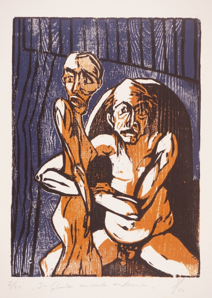 Galerie Im Glauben einander zu kennenMappe: A DREI 1/86/8 Kontakte IFarbholzschnitt, 31,0x22,8 42,0x30,0 cm, 2/20 1986Lochter Andreas