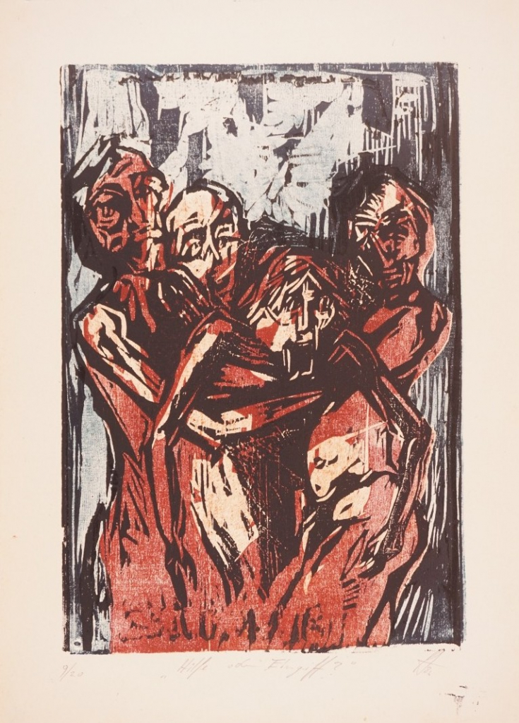 Galerie Hilfe oder EingriffMappe: A DREI 2/86/9 Kontakte IIHolzschnitt, 33,3x23,0 42,2x29,7 cm, 9/12 1986Lochter Andreas