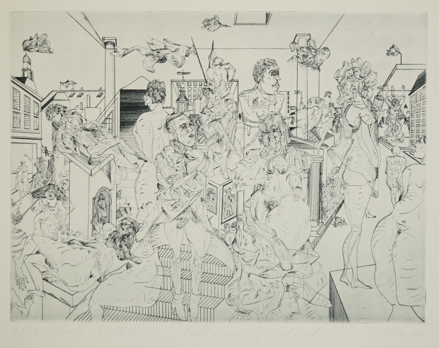 Galerie Stadtszenerie I Mappe: "Der Mensch und die Stadt" zum 100. Geb. von Max BeckmannRadierung, 44,5x59,5 52,5x70,5 cm, 6/20 1984Dress Andreas