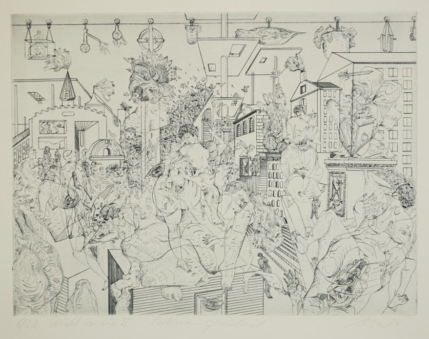 Galerie Stadtszenerie II Mappe: "Der Mensch und die Stadt" zum 100. Geb. von Max BeckmannRadierung, 44,3x59,5 52,5x70,5 cm, 6/20 1984Dress Andreas