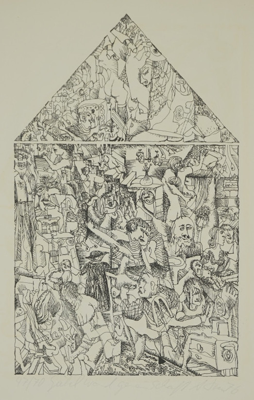 Galerie Bl.3 Giebelwand GemeinschaftMappe: Format "imagination"Radierung, 38,7x24,0 48,8x39,0 cm, 47/70 1976Dress Andreas