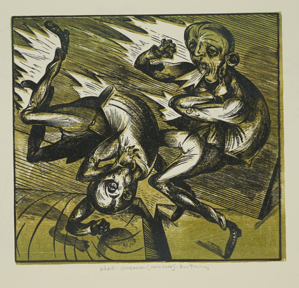 Galerie für R.M.R. "Draußensein - (und ich in Lohe)"Mappe: A. + G. Lichtenstein Stiftung zu R. M. Rilke "Du musst dein Leben ändern."Farbholzschnitt, 28,0x30,5 39,0x53,5 cm, XVI/XVII 2014Hirsch Karl-Georg