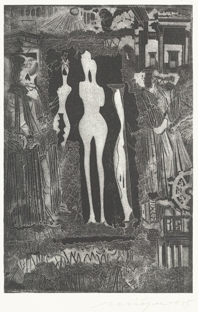 Galerie Töpferin zu Rainer Maria Rilke Sonette an OrpheusMappe: A. + G. Lichtenstein Stiftung zu R. M. Rilke "Du musst dein Leben ändern."Schablithografie, 29,1x19,1 39,0x53,5 cm, XVI/XVII 2015Münzner Rolf