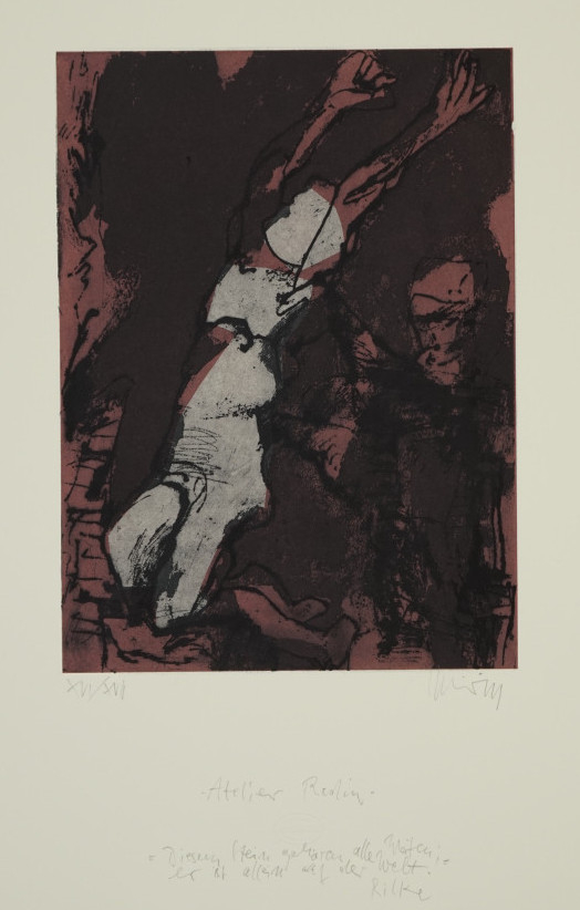 Galerie Atelier Rodin "Diesem Stein gehören alle Weiten;.."Mappe: A. + G. Lichtenstein Stiftung zu R. M. Rilke "Du musst dein Leben ändern."Chine Collé/Radierung, 30,5x23,0 39,0x53,5 cm, XVI/XVII 2015Schnürpel Peter