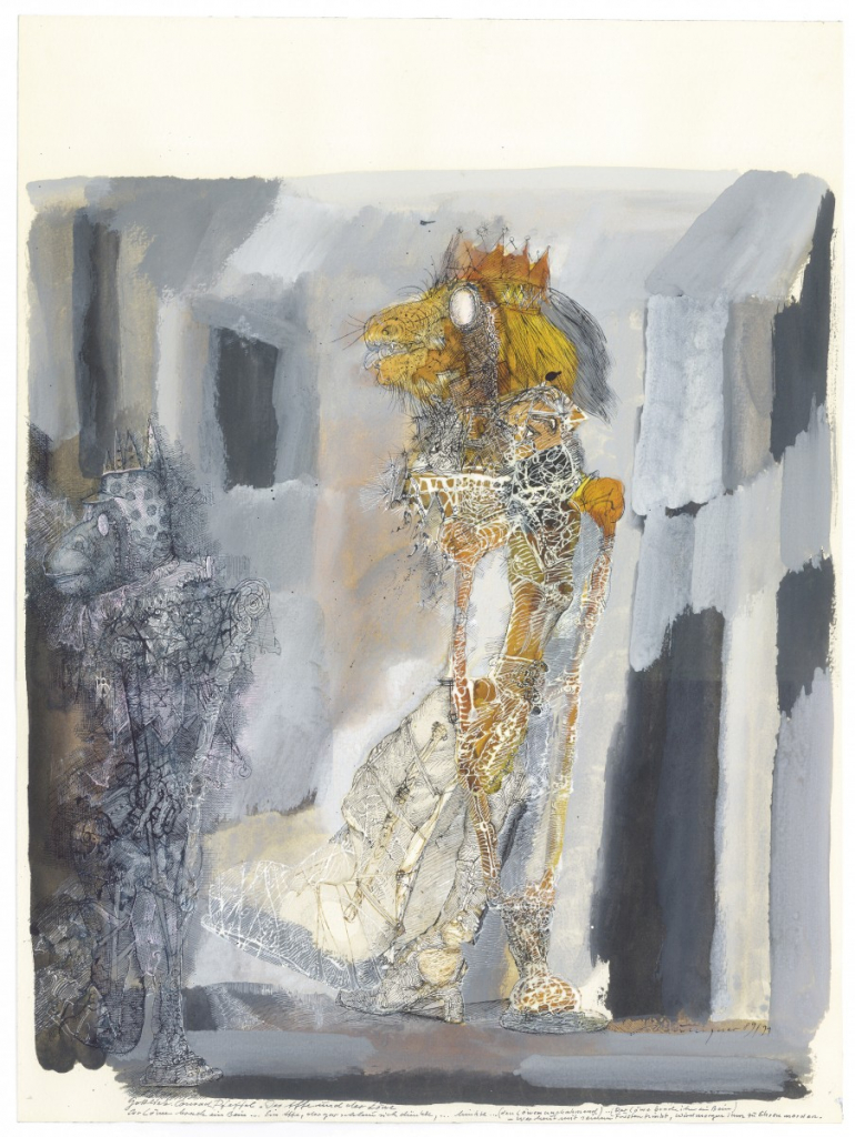 Galerie Zu Gottlieb Conrad Pfeffel "Der Affe und der Löwe" FabelPinsel und Feder in Aquarell und Tusche, 48,0x36,0 cm, 1989/99Münzner Rolf