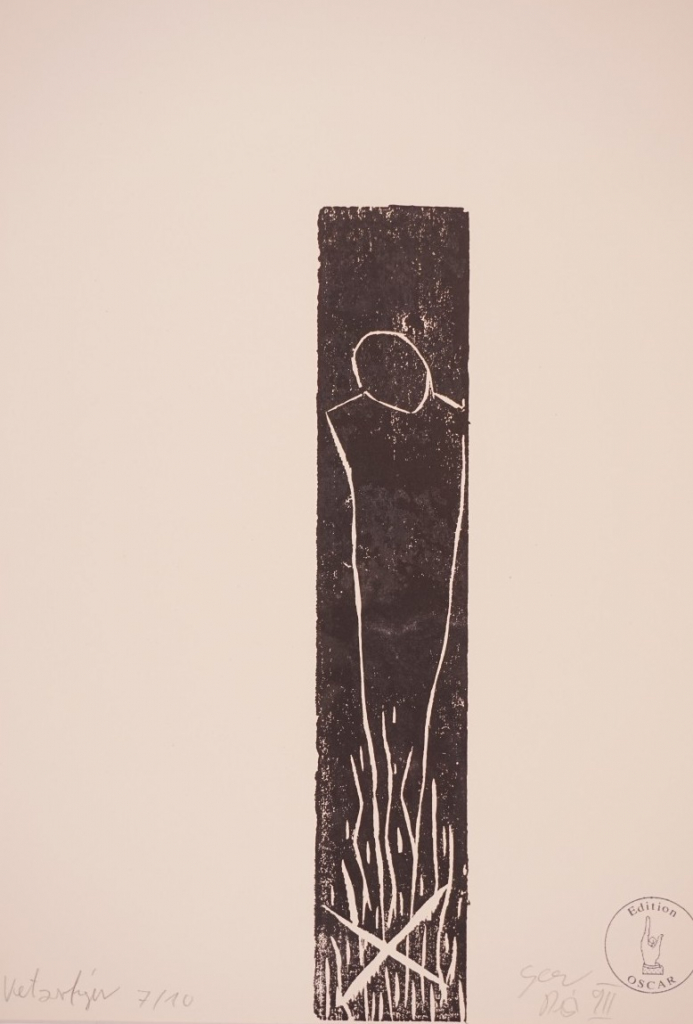 Galerie KetzerfigurMappe: Edition Oscar "Der Schnitt" Holzschnitt, 42,0x29,0 50,5x30,5 cm, 7/10 1992Dick Georg