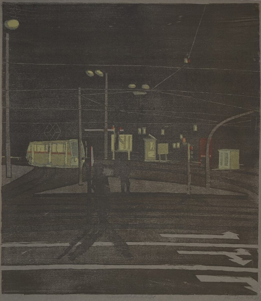 Galerie Leipziger NachtlandschaftFarbholzschnitt, 50,0x43,5 52,0x44,5 cm, 15/20 1981Ebersbach Christine