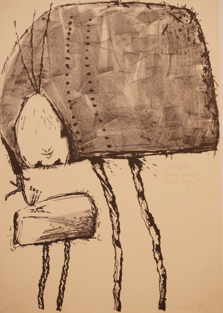 Galerie Warum bereiten Sie uns solche sorgenMappe: A DREI 2/88/14 PepitaLithografie, 42,0x29,7 cm, 6/25 1988Schmidt Michael