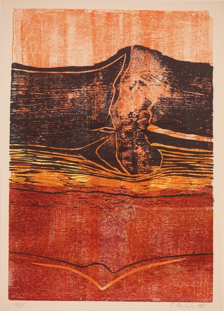 Galerie o.T. Mappe: A DREI 1/88/13 Das waren LandschaftenFarbholzschnitt, 29,3x27,7 42,0x29,7 cm, 16/25 1987Höritzsch Gudrun