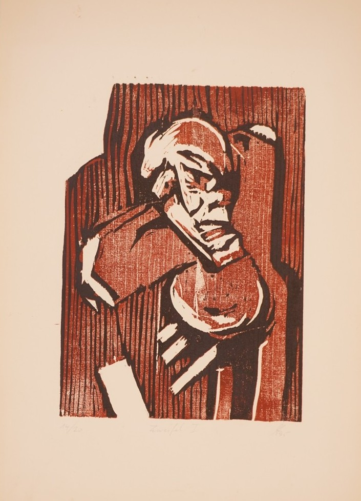 Galerie Zweifel IMappe: A DREI 2/85/7 Farbholzschnitt, 26,5x19,2 42,0x29,6 cm, 14/20 1985Lochter Andreas