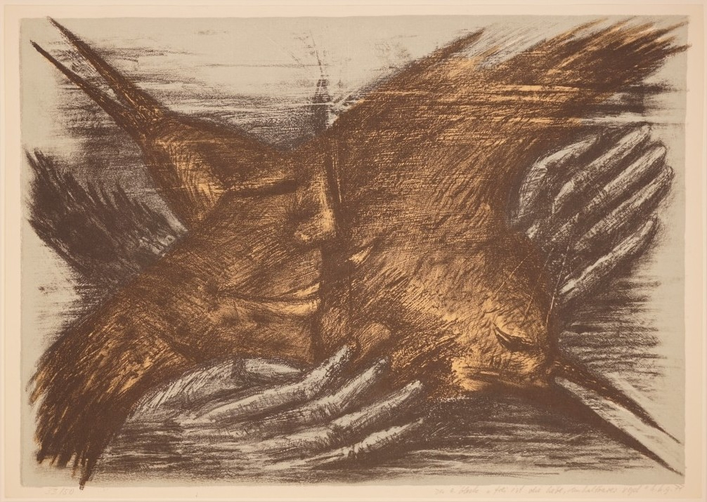 Galerie "Frei ist die Liebe, unhaltbarer Vogel"Farblithografie, 32,5x46,0 34,0x48,0 cm, 33/50 1977Grimmling Hans-Hendrik