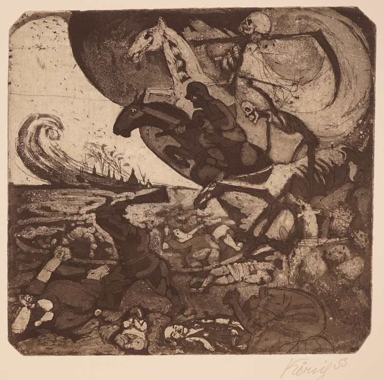 Galerie Die Apokalyptischen ReiterMappe: Grafik-Presse "eikon" "Fastnachtsspuk im Wallgässchen"Radierung, 31,7x33,3 53,5x39,5 cm, 40/50 1988Körnig Hans