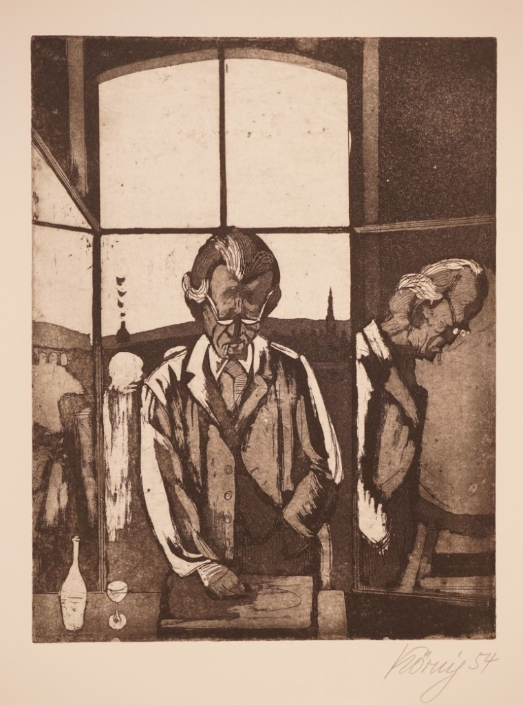 Galerie Otto Dix arbeitet in DresdenMappe: Grafik-Presse "eikon" "Fastnachtsspuk im Wallgässchen"Radierung, 40,0x30,5 53,5x39,5 cm, 40/50 1988Körnig Hans