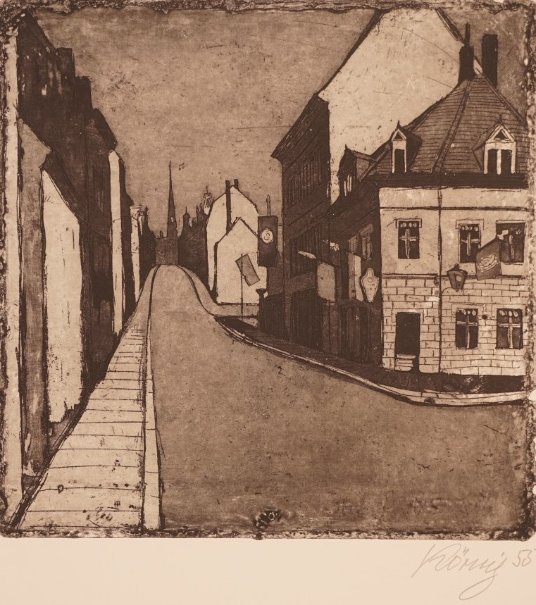 Galerie Die AlaunstrasseMappe: Grafik-Presse "eikon" "Fastnachtsspuk im Wallgässchen"Radierung, 32,7x33,0 53,5x39,5 cm, 40/50 1988Körnig Hans