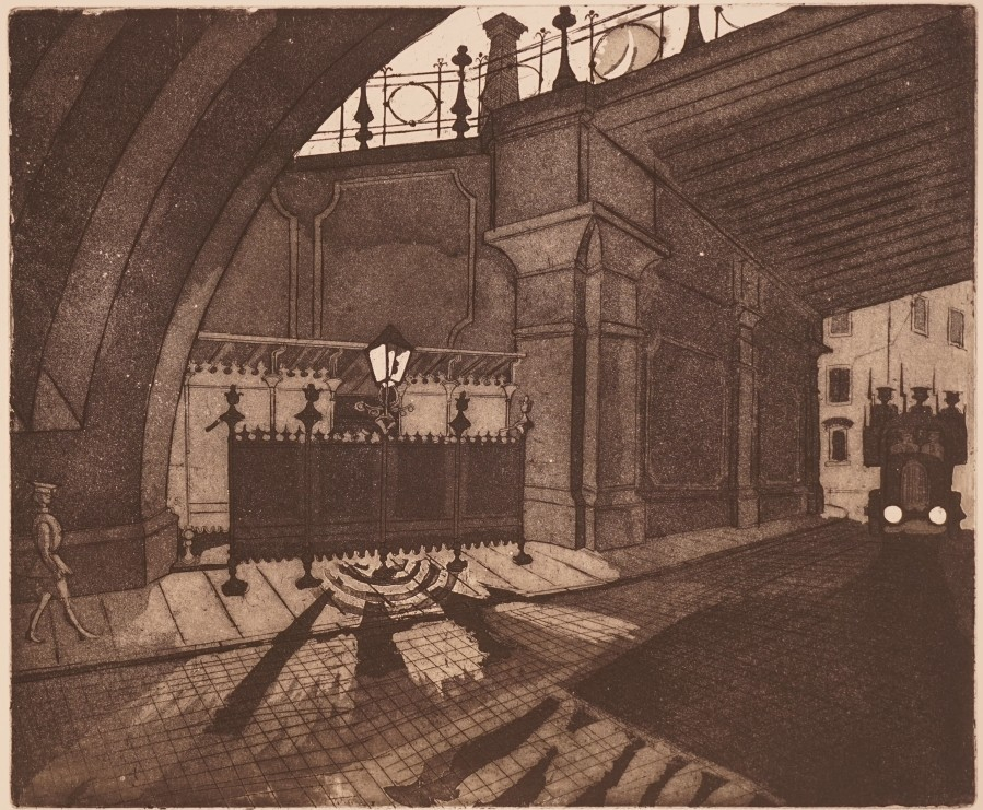 Galerie HechtvorstadtMappe: Grafik-Presse "eikon" "Fastnachtsspuk im Wallgässchen"Radierung, 33,0x39,5 53,5x39,5 cm, 40/50 1988Körnig Hans