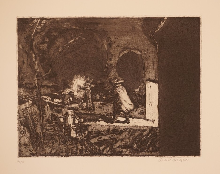 Galerie Bl.12 Ach! Auf dem Weg, der mich zu dir führte, sah ich ….Mappe: Metzkes H. "Prinz Friedrich von Homburg" zu H. v. KleistAquatinta, 24,7x33,3 38,0x50,5 cm, 16/40Metzkes Harald