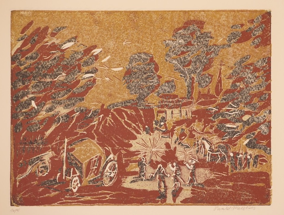 Galerie Bl.17 Hier diesen Paß dem schwed'schen Grafen Horn !Mappe: Metzkes H. "Prinz Friedrich von Homburg" zu H. v. KleistFarbholzschnitt, 27,0x36,0 38,0x50,5 cm, 16/40Metzkes Harald