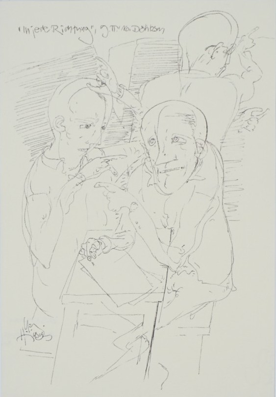 Galerie In jede RichtungMappe: Hirsch K.-G. Edition Zwi 2016 "erfahren,erinnert"Feder in Tusche , 21,5x15,0 34,0x27,0 cm, 9.II 2016Hirsch Karl-Georg