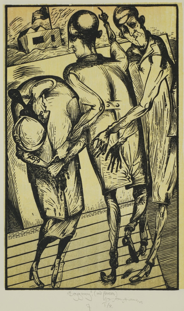 Galerie Bl.7 Begegnung (mit Ahasver)Mappe: Hirsch K.-G. Edition Zwi 2016 "erfahren,erinnert"Farbholzschnitt, 30,3x19,0 34,0x27,0 cm, I/X 2015Hirsch Karl-Georg