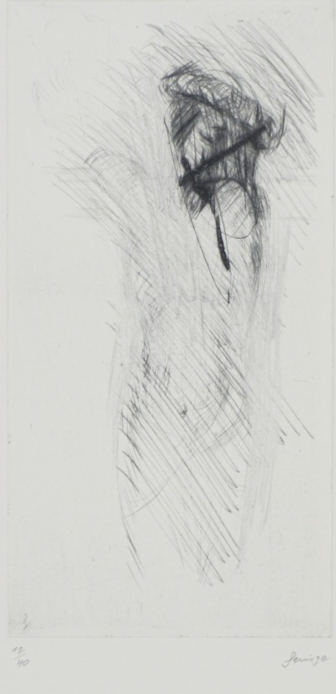 Galerie Versuch über RiemenschneiderMappe: Hagedornpresse Nr.3 "An einem Ort"Radierung, 16,3x8,3 47,0x35,5 cm, 12/40 1995Heinze Helmut