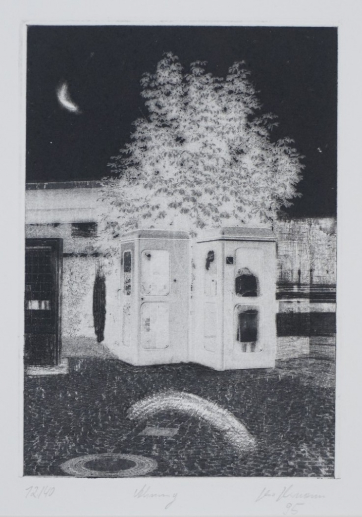 Galerie AhnungMappe: Hagedornpresse Nr.3 "An einem Ort"Radierung, 18,7x13,0 47,0x35,0 cm, 12/40 1995Herrmann Jens