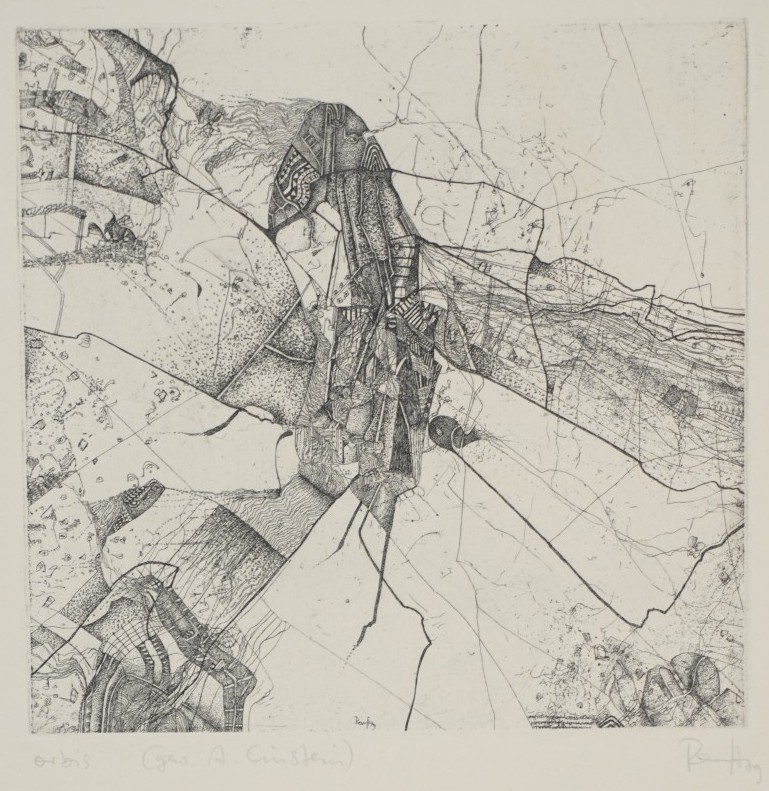 Galerie orbis (gew. A.Einstein)Mappe: "Raum & Zeit" zum 100. Geburtstag von Albert EinsteinRadierung, 19,5x20,0 50,0x50,0 cm, EA 1979Ranft Thomas