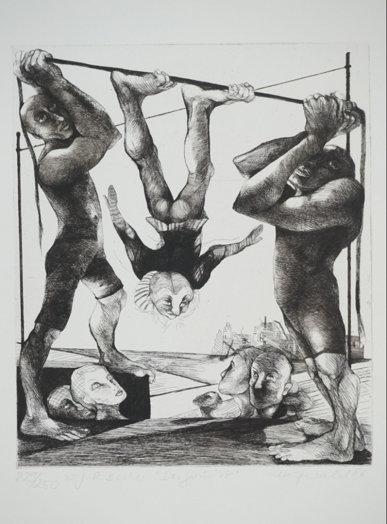 Galerie Das Gerücht zu J.R.BecherMappe: Johannes R. BecherRadierung, 37,3x31,5 48,0x38,0 cm, 229/250 1986Hegewald Heidrun