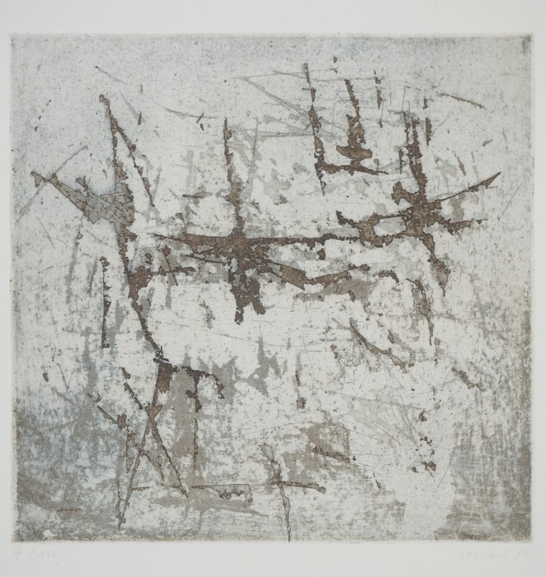 Galerie Ikarus in AuflösungMappe: Freundeskreis Magdeburg "Handschriften II"Farbradierung, 32,0x32,8 53,3x39,5 cm, 7/100 1980Göschel Eberhard