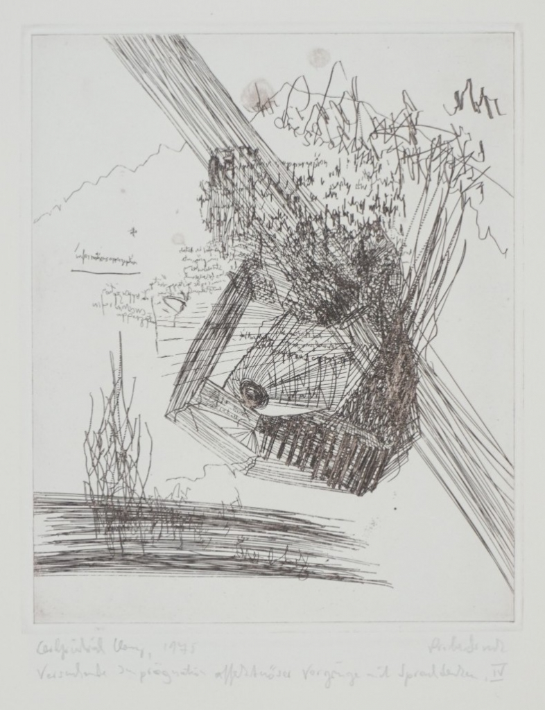 Galerie Versuchende Imprägnation affektöserVorgänge und Sprachdenken Bl. IVRadierung, 18,0x14,7 46,0x33,0 cm, Probe 1975Claus Carlfriedrich