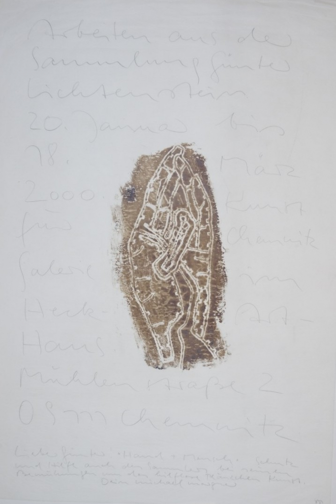 Galerie o.T. (Hand und Mensch)Grafit/Monotypie mit Asphaltlack auf Seidenpapier, 100,0x69,5 cm, 1999Morgner Michael