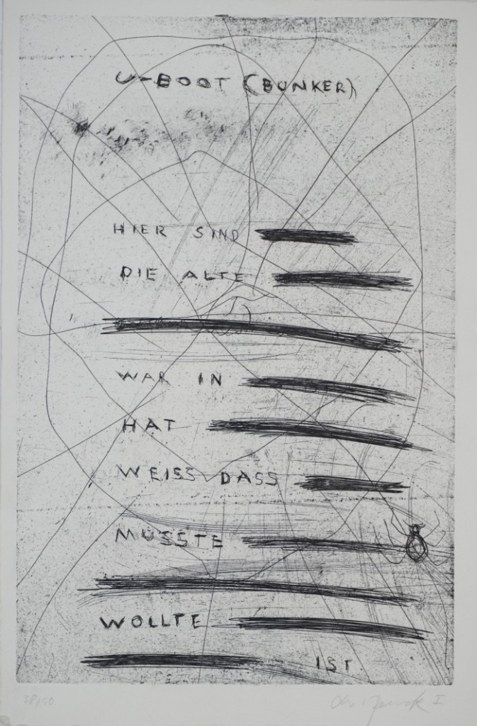 Galerie Bl. 1 U-BootMappe: Obergrabenpresse Penck/Winkler R. "Kneipen und Kneipentexte"Radierung, 34,7x22,7 37,7x25,3 cm, 38/50 1980Penck A.R.