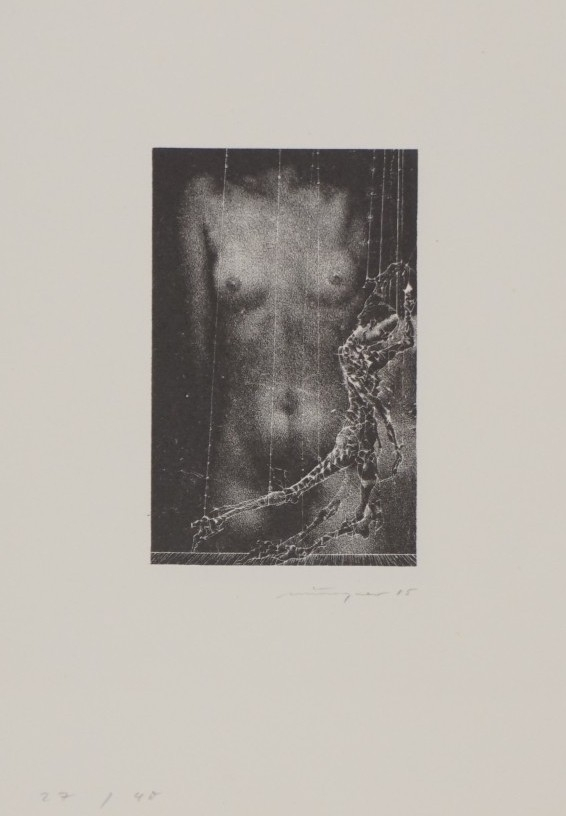 Galerie Bl.4 o.T.Mappe: Münzner R. "La Femme et le Pantin"Schablithografie, 7,2x4,6 14,7x10,5 cm, 27/40 1985Münzner Rolf