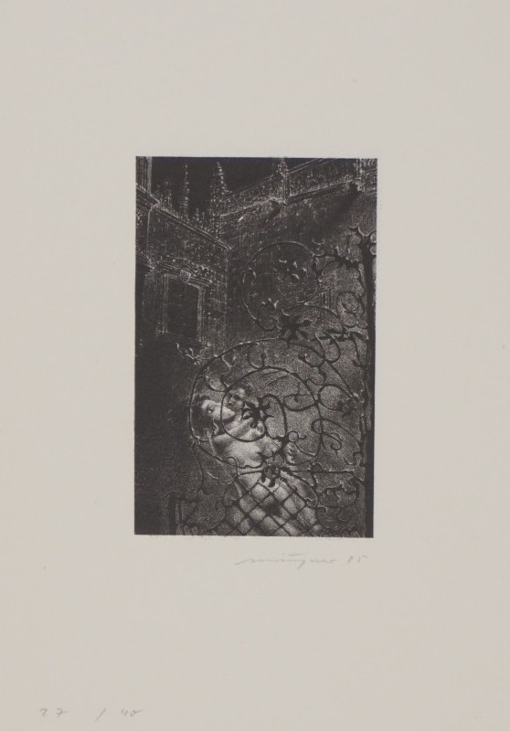Galerie Bl.8 o.T.Mappe: Münzner R. "La Femme et le Pantin"Schablithografie, 7,2x4,6 14,7x10,5 cm, 27/40 1985Münzner Rolf