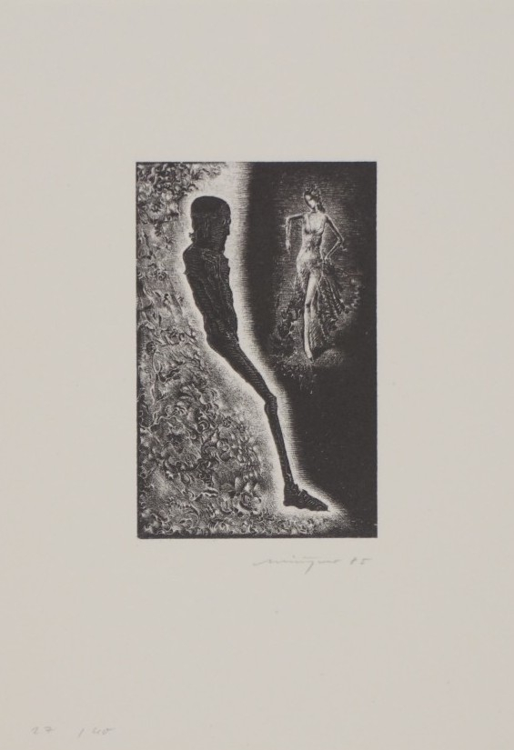 Galerie Bl.12 o.T.Mappe: Münzner R. "La Femme et le Pantin"Schablithografie, 7,2x4,6 14,7x10,5 cm, 27/40 1985Münzner Rolf