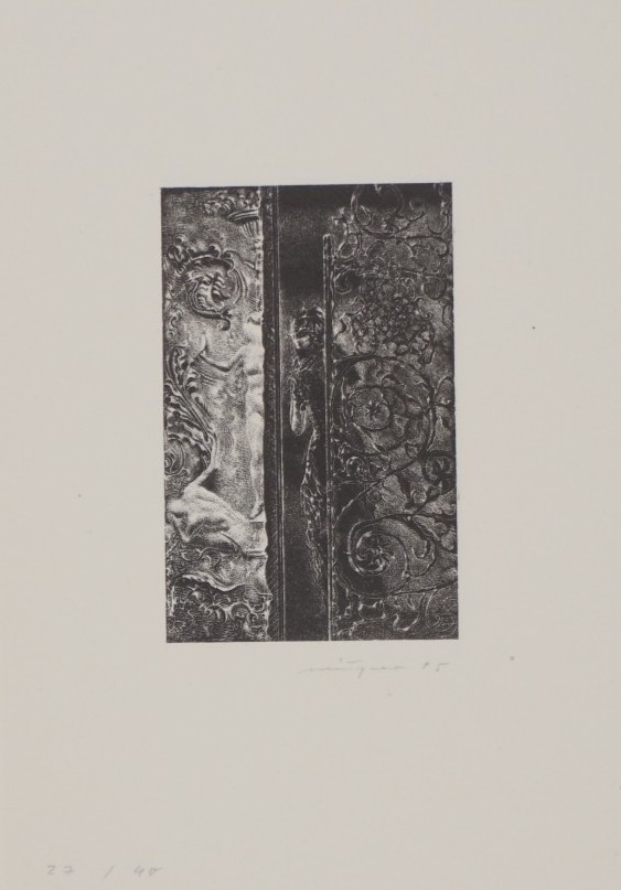 Galerie Bl.14 o.T.Mappe: Münzner R. "La Femme et le Pantin"Schablithografie, 7,2x4,6 14,7x10,5 cm, 27/40 1985Münzner Rolf