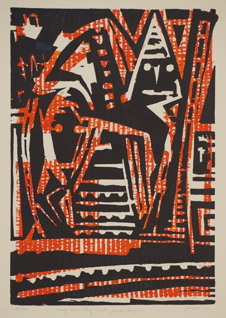 Galerie auf dem Weg nach GöpfersdorfMappe: 17.HolzbildhauerpleinairFarbholzschnitt, 37,3x26,0 40,0x30,0 cm, 16/30 2017Seifert Jörg
