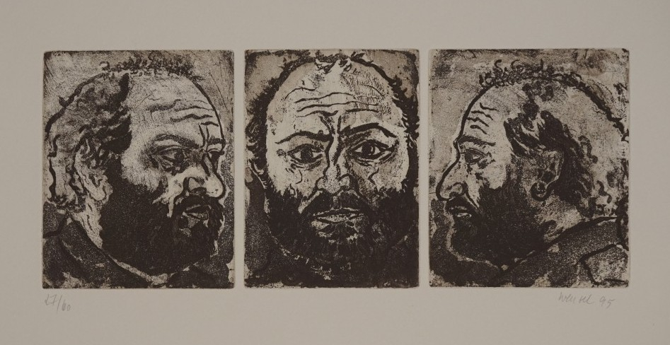 Galerie Bl.3 o.T. 3 SelbstportraitsMappe: B53 fünf/95 Jahresmappe 1995 Radierung, 18,5x46,0 39,5x53,8 cm, 27/60 1995Wenzel Jürgen