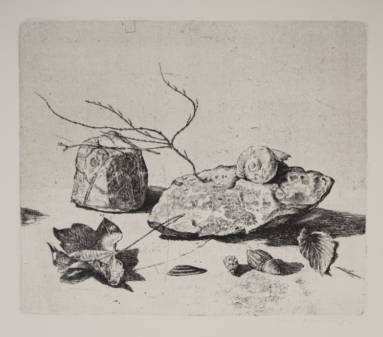 Galerie BL. 1 Stilleben mit SteinMappe: Berliner Graphikpresse Magnus K. StillebenRadierung, 20,5x24,0 53,5x39,5 cm, 60/85 1987Magnus Klaus