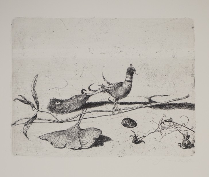Galerie BL. 4 Stilleben mit ParadiesvogelMappe: Berliner Graphikpresse Magnus K. StillebenRadierung, 17,0x22,5 53,5x39,5 cm, 60/85 1986/7Magnus Klaus