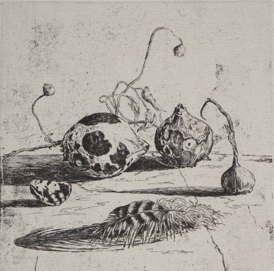 Galerie BL. 9 Stilleben mit QuitteMappe: Berliner Graphikpresse Magnus K. StillebenRadierung, 19,7x19,7 53,5x39,5 cm, 60/85 1985Magnus Klaus