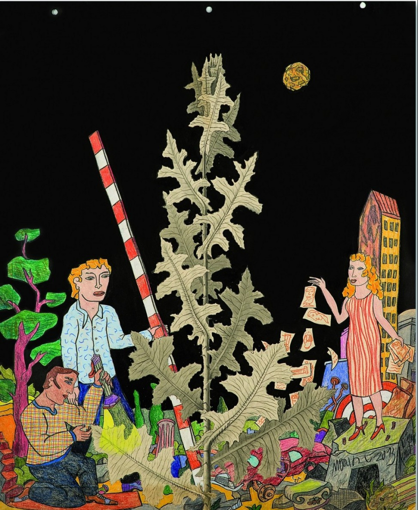 Galerie Die Nacht und ihre RätselBuntstift/Tusche auf Rostocker Pappe, 116,0x83,0 cm, 2013Götze Moritz