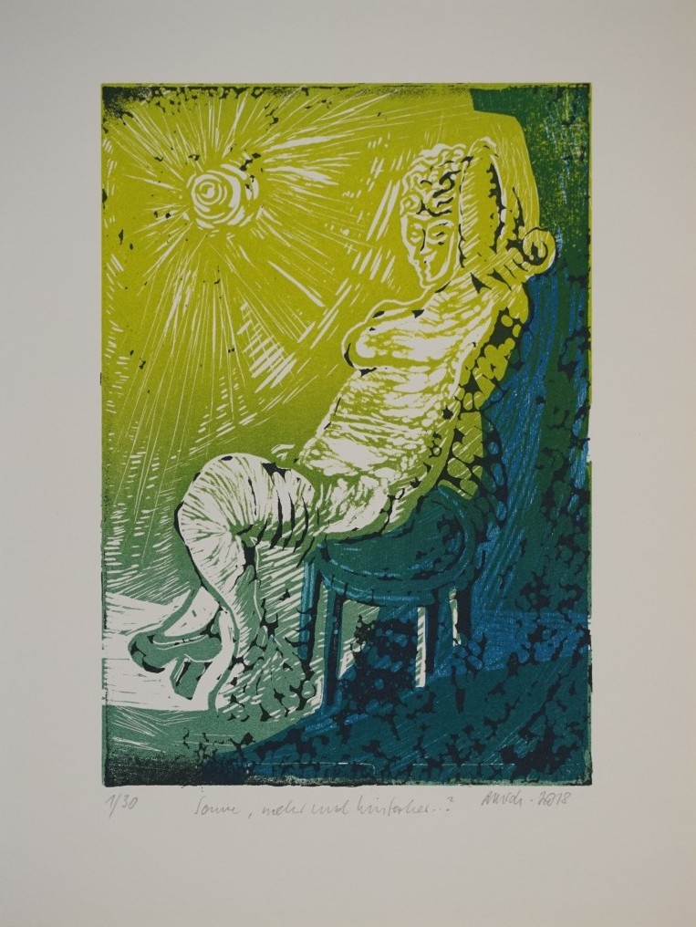 Galerie Sonne, mehr und hinterherMappe: 18.Holzbildhauerpleinair 2018Farbholzschnitt, 30,0x21,0 40,0x30,0 cm, 1/30 2018Schubert Rainer Maria