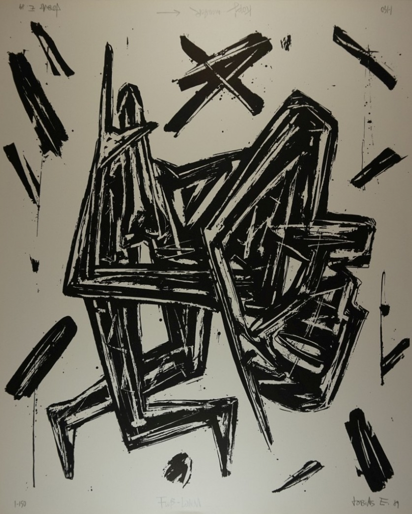 Galerie Bl.5 Kopf - munter Mappe: Edition Antenne "Fuss-Lahm"Siebdruck, 59,0x71,0 76,5x65,0 cm, 1-150 1989Ellmann Tobias