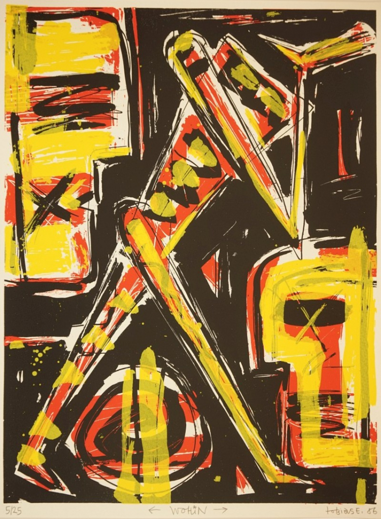 Galerie WohinMappe: EIGEN+ART Jubiläumsmappe 1 Jahr GalerieFarbsiebdruck, 46,0x34,5 48,0x36,0 cm, 5/25 1986Ellmann Tobias