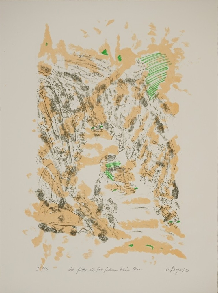 Galerie Bl.6 "Die Götter der Tore fahren kein Heu ein"Mappe: Berger W. "Verwurzelungen"Lithografie, 34,5x23,5 53,5x39,5 cm, 35/60 1990Berger Wolfgang