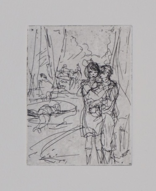 Galerie Bl.7 Freunde - Junges Paar im ParkMappe: Galerie Am Sachsenplatz Edition M12 Schwimmer Max IIIRadierung, 8,0x6,0 28,5x20,0 cm, 27/30Schwimmer Max