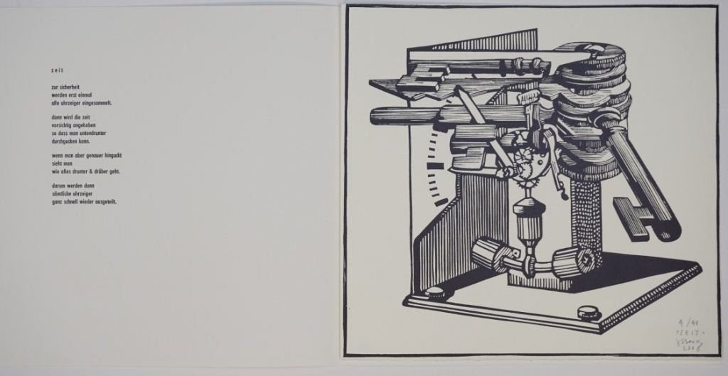 Galerie Bl.5 ZeitMappe: Nitzsche G. "es liegt etwas in der Luft"Linolschnitt, 30,4x32,2 cm, 4/40Marx Stephanie
