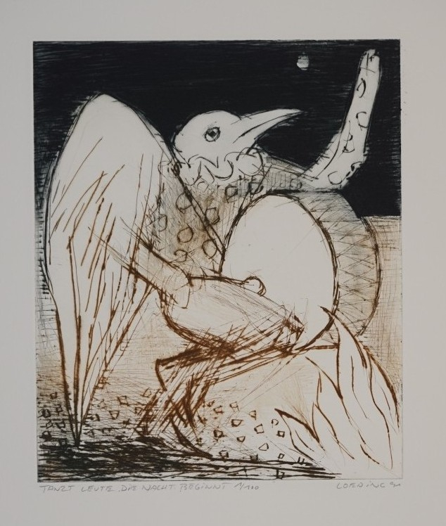 Galerie Bl.6 Tanzt Leute, die Nacht beginntMappe: B53 zwei/92 "Radierung"Farbradierung, 33,0x27,5 53,5x38,5 cm, 1/99 1991Loeding Peter