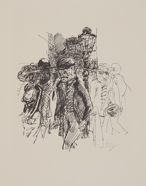 Galerie Mackie Messer zur DreigroschenoperMappe: 1.Leipziger Grafikmappe zur LiteraturFederlithografie, 20,0x18,0 47,7x34,0 cm, 1964Heisig Bernhard