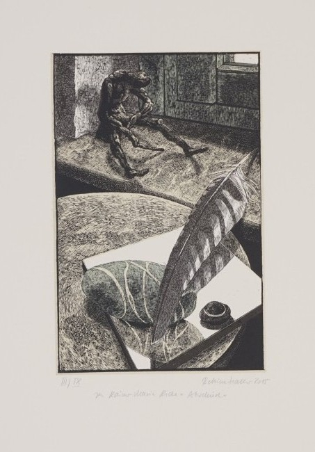 Galerie Abschied zu Rainer Maria RilkeMappe: Haller B. "zu Rainer Maria Rilke"Acryl/Farbholzschnitt, 20,0x13,7 47,5x32,5 cm, III/IX 2016Haller Bettina